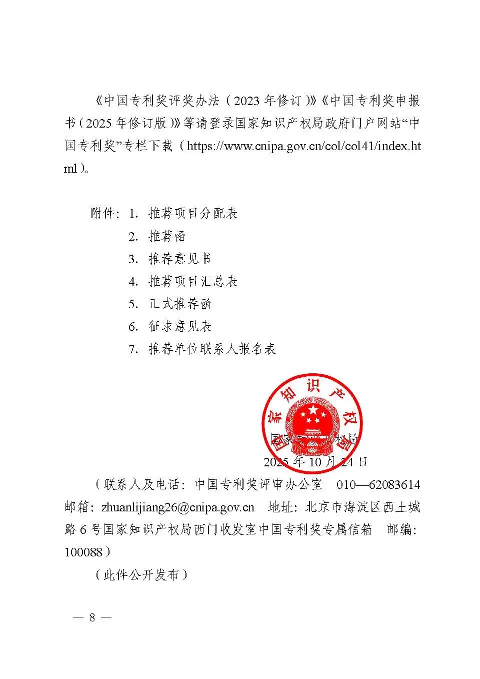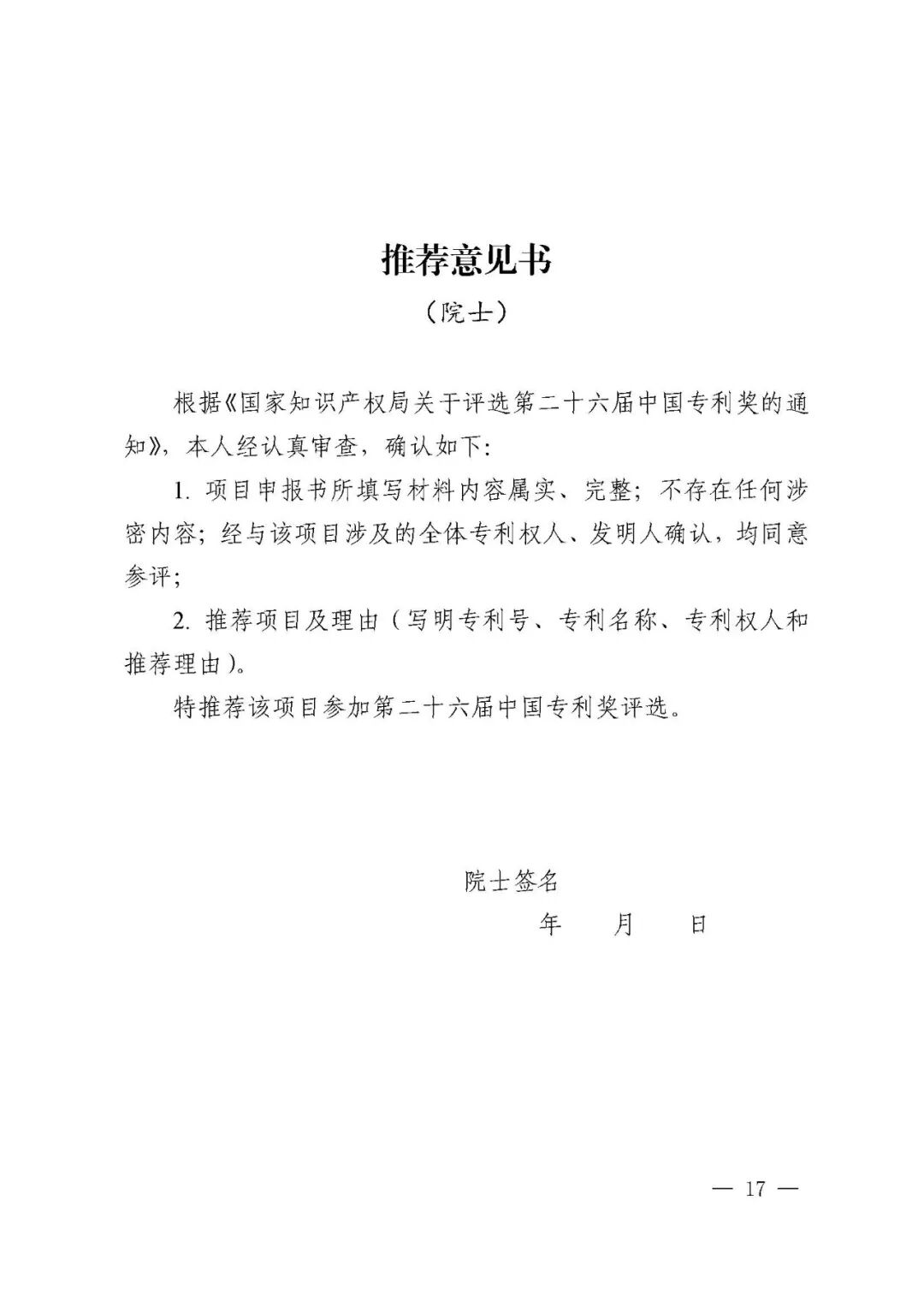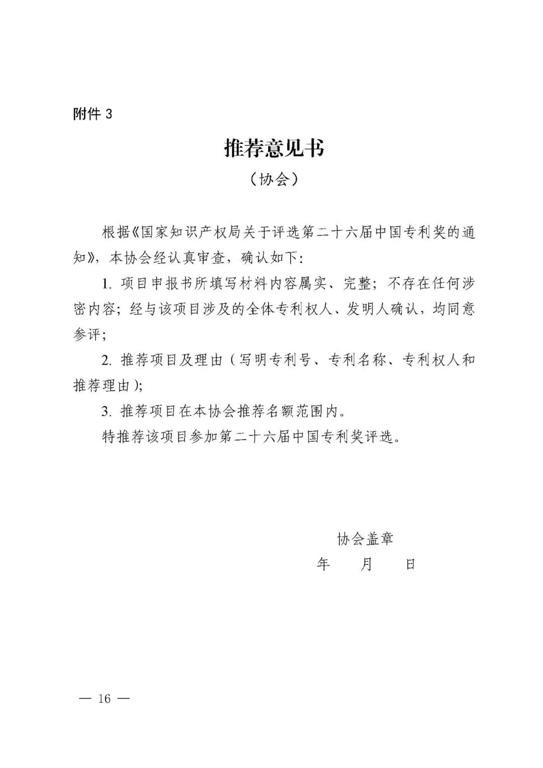 附件:国家知识产权局关于评选第二十六届中国专利奖的通知.pdf