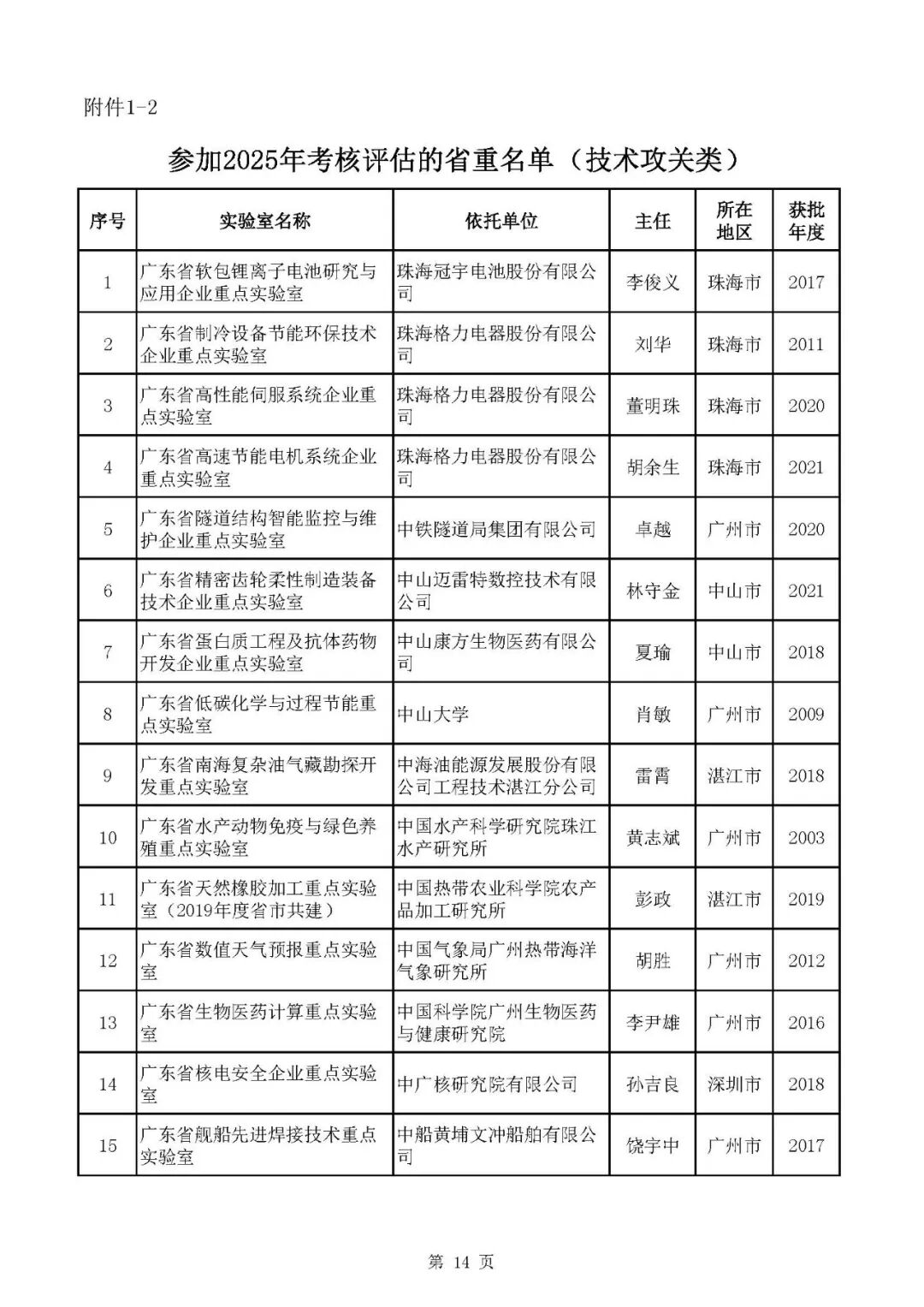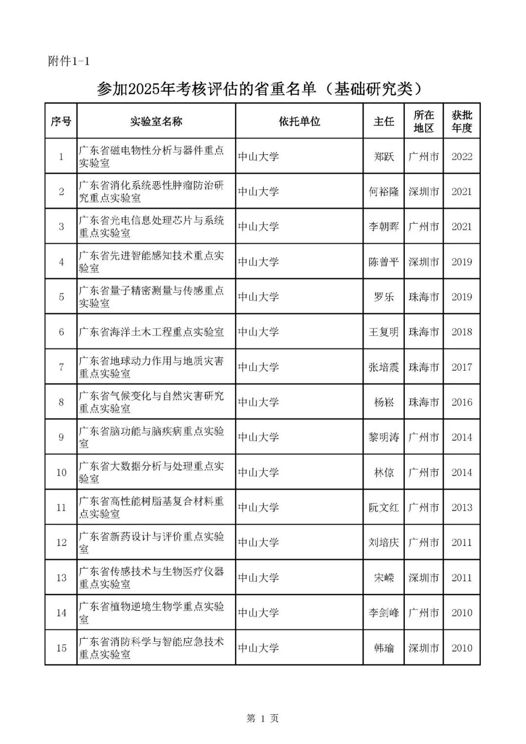 截至2025年6月30日建设运行期满3年或通过实验室项目验收的省重点实验室,具体名单见附件1。