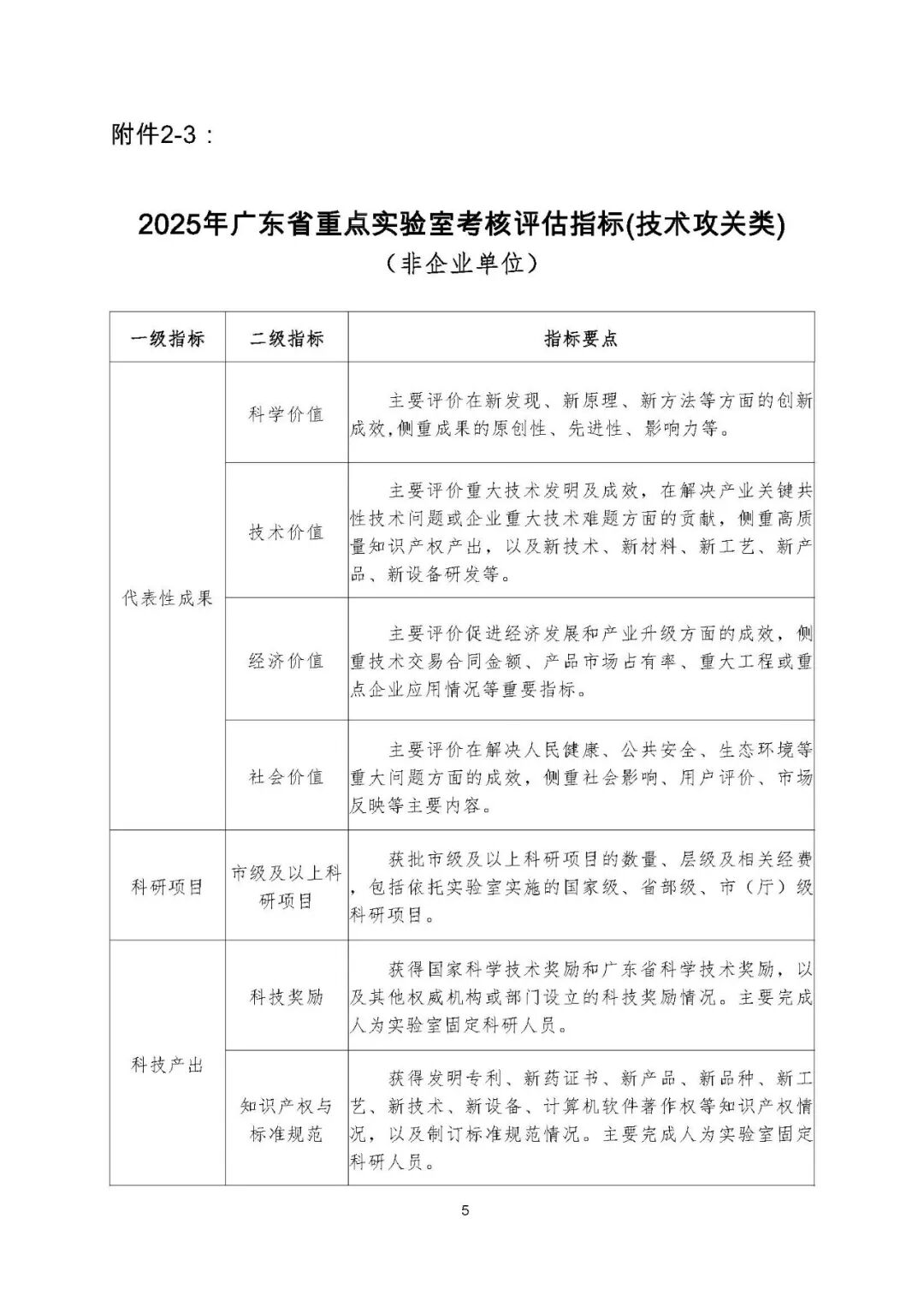 (三)类别侧重:基础研究类省重点实验室侧重考评原始创新能力、科学前沿竞争力、支撑服务国家和广东重大战略的能力;技术攻关类省重点实验室侧重考评行业共性关键技术研发、成果转化应用能力,以及对行业技术进步的引领带动。