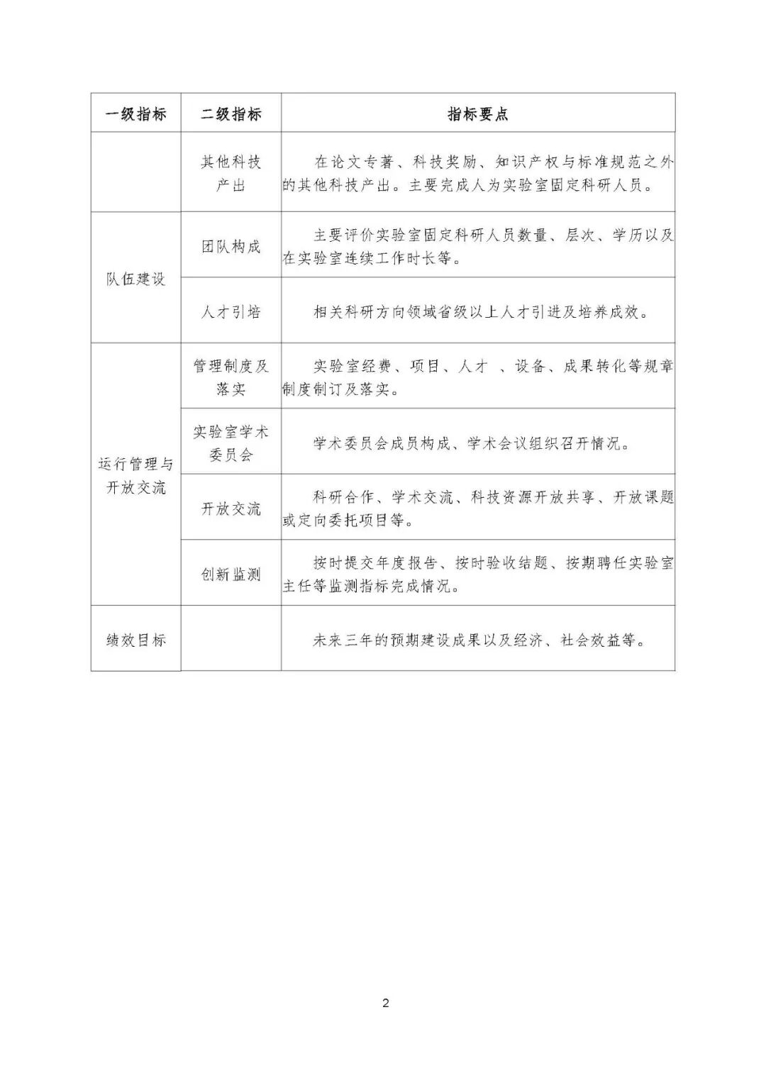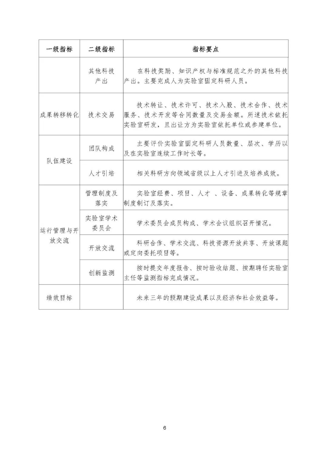 (二)考评内容:上述考评时限内,省重点实验室在代表性成果、科研项目、科技产出、人才队伍、运行管理、开放交流等方面的主要建设成效,具体指标见附件2。