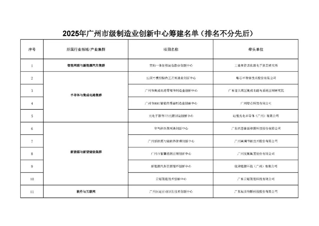 根据《广州市工业和信息化局关于开展2025年市级制造业创新中心建设申报工作的通知》,我局开展了2025年市级制造业创新中心项目的征集、评审。经审核,48个市级制造业创新中心入选筹建名单,现予以公示,公示期为2025年12月13日至2025年12月19日(7个自然日)。