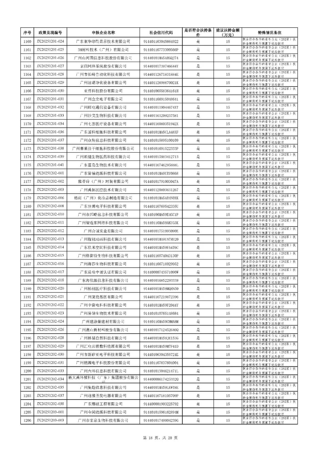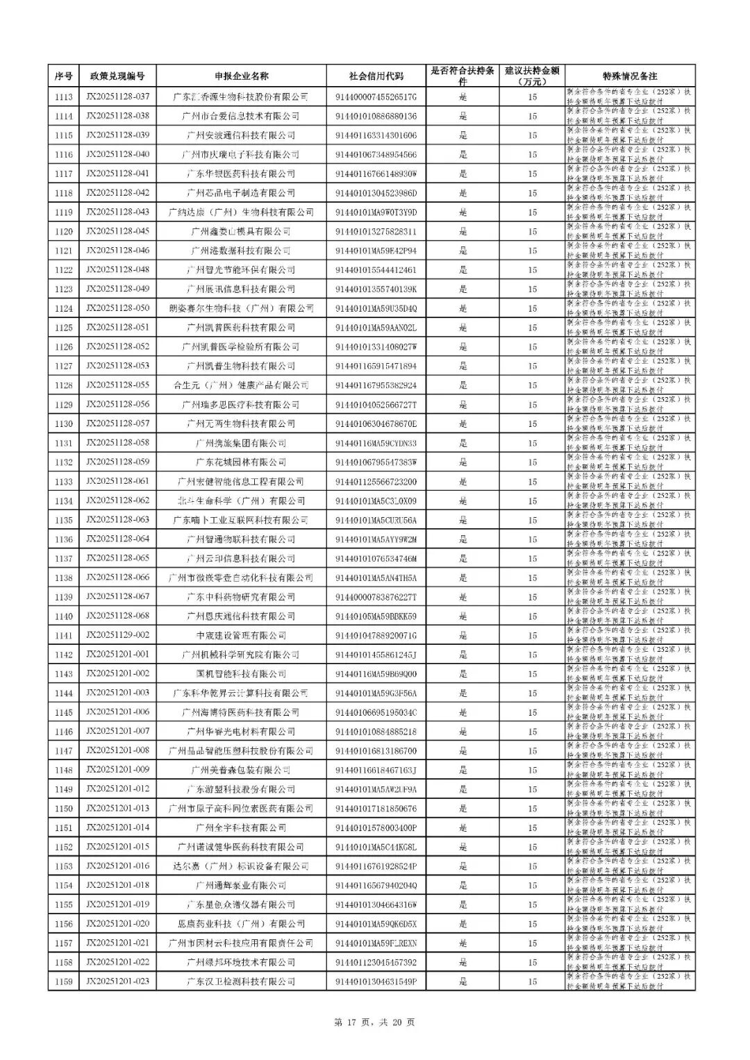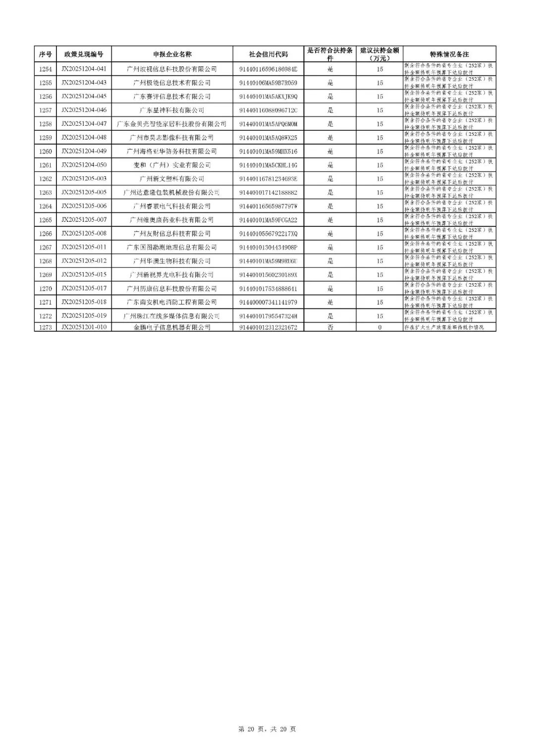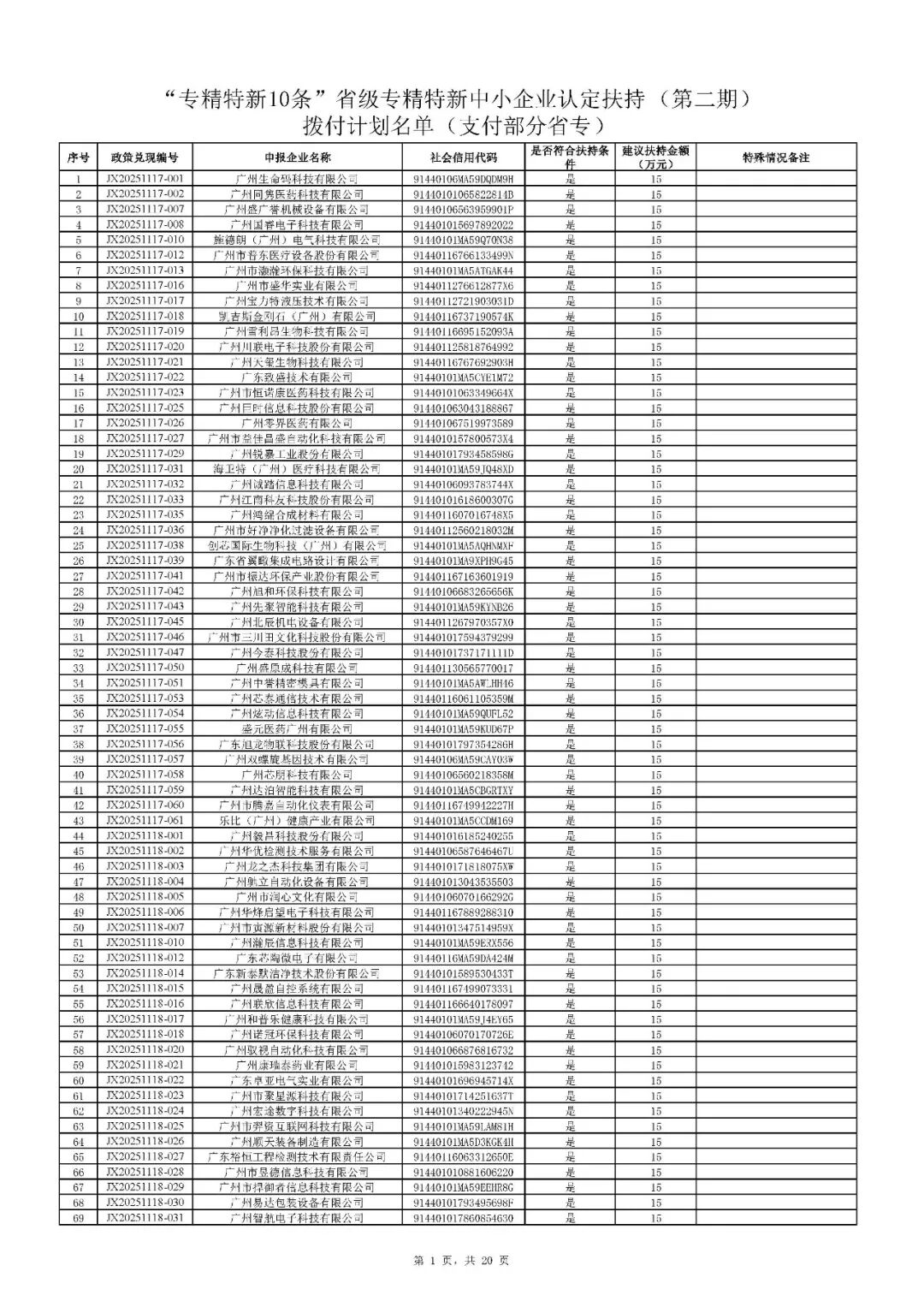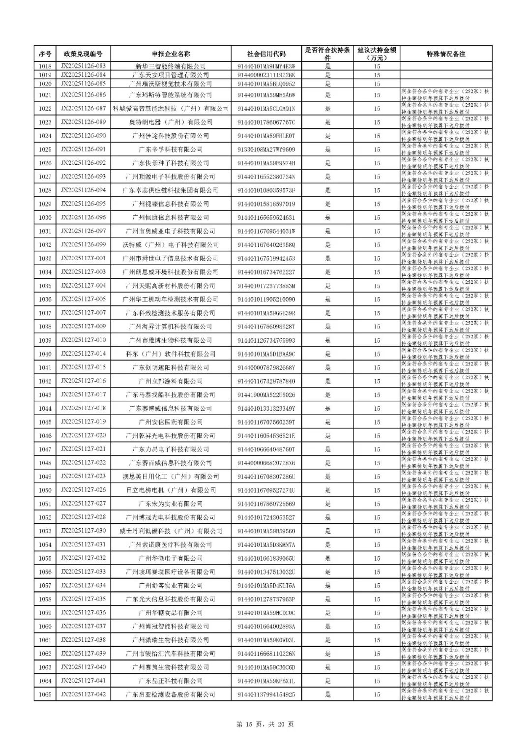 二、根据财政预算,拨付顺序按政策兑现编号由小到大进行排序,序号前1020号(JX20251126-085及之前)先进行拨付。剩余符合条件的省专企业252家(JX20251126-086及之后)扶持资金待明年预算下达后拨付。
