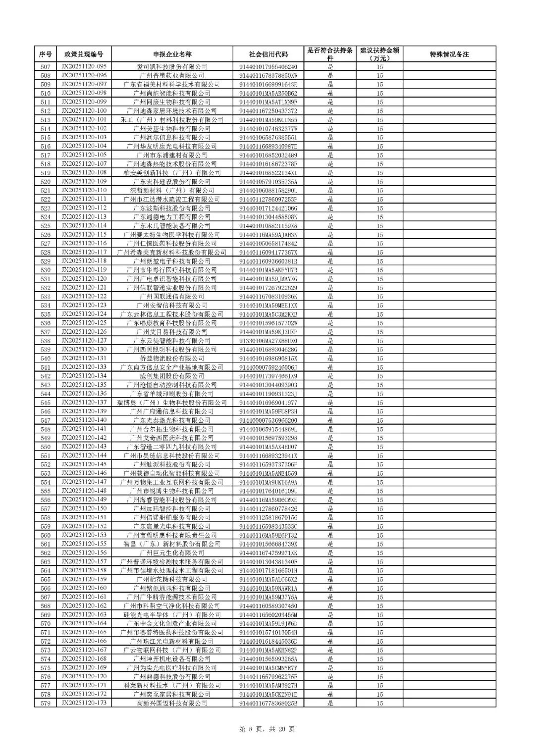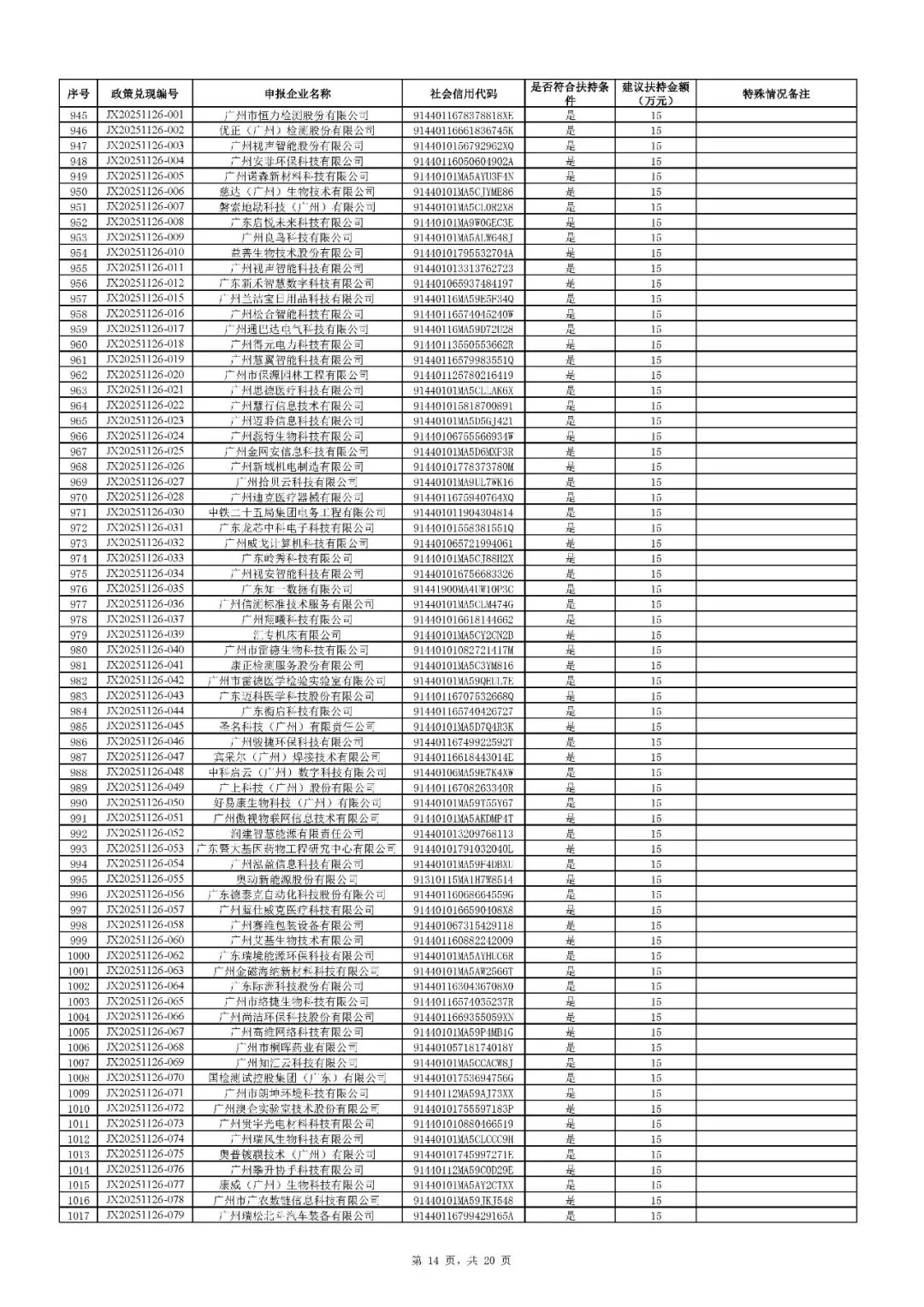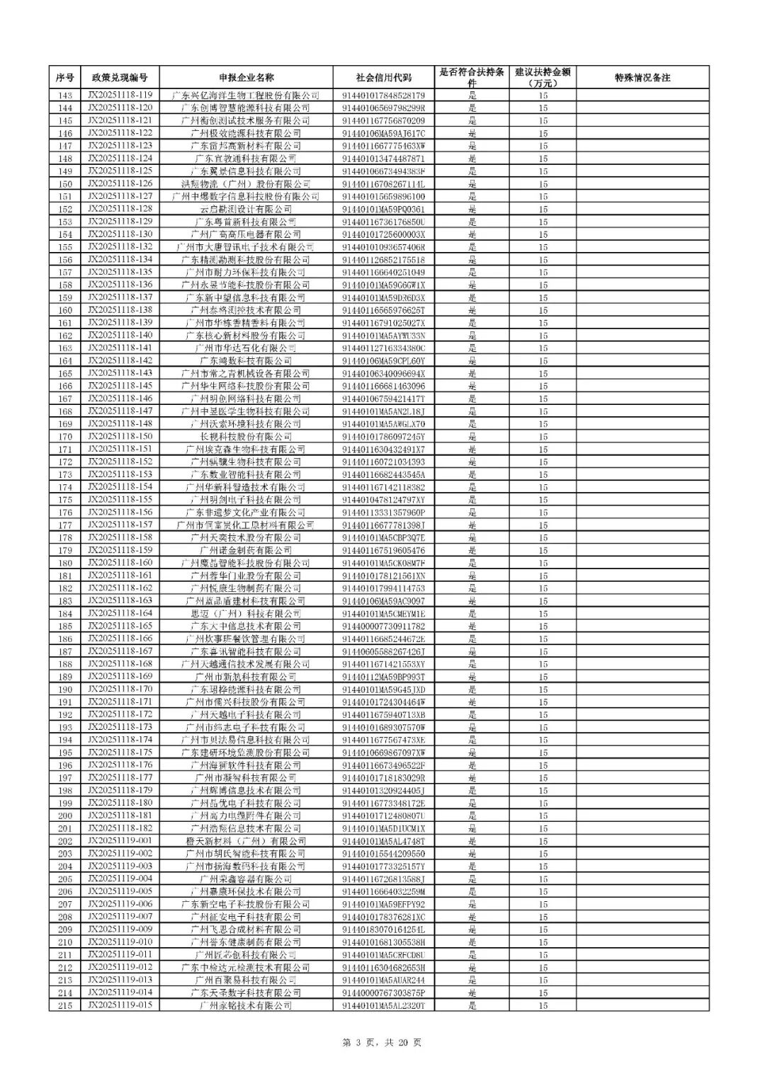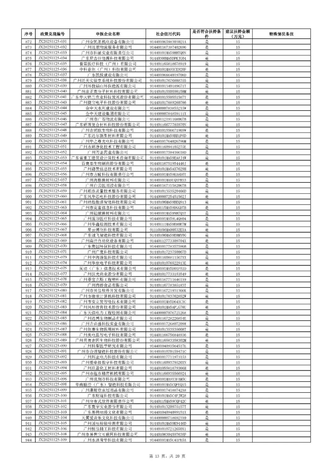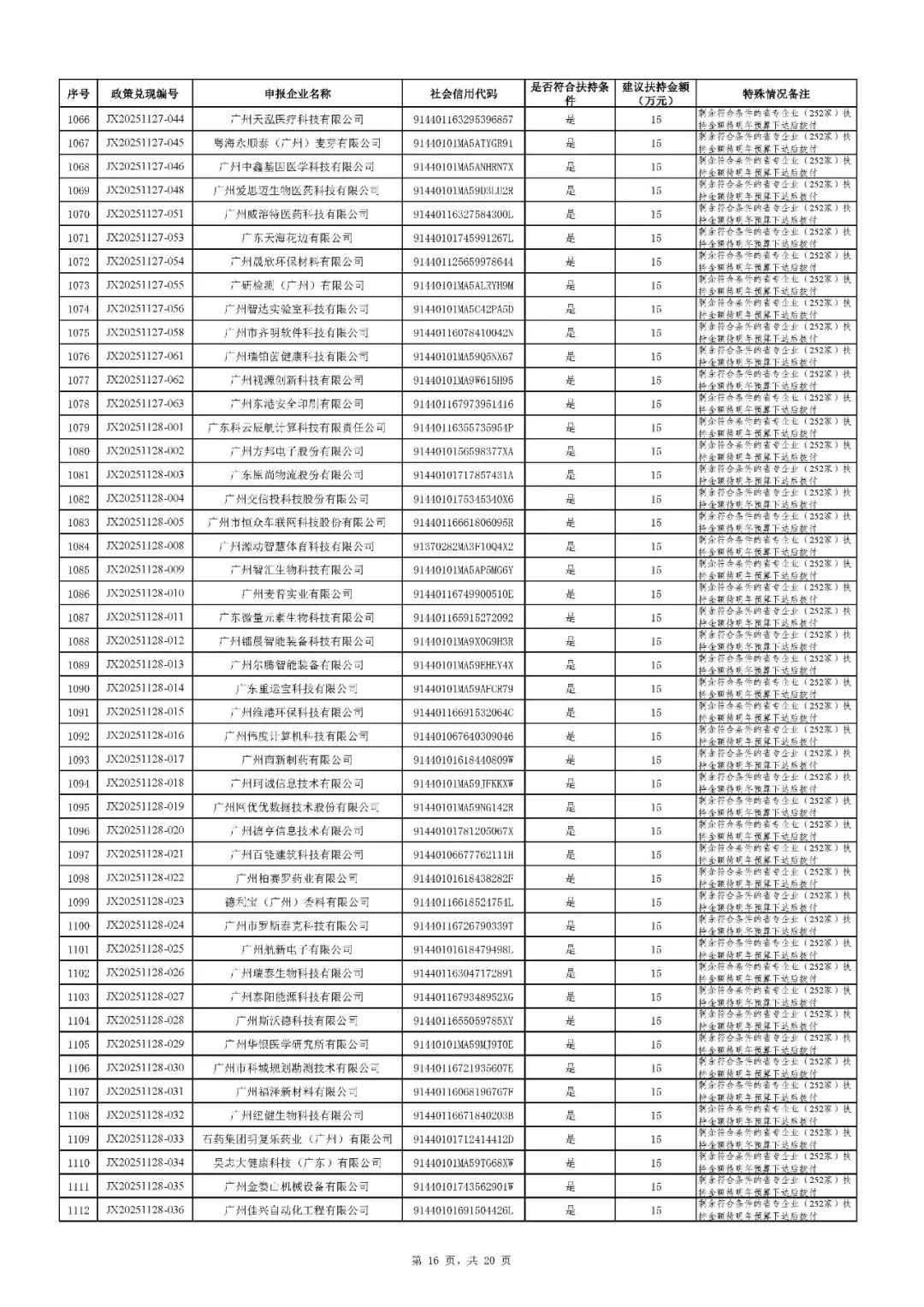 二、根据财政预算,拨付顺序按政策兑现编号由小到大进行排序,序号前1020号(JX20251126-085及之前)先进行拨付。剩余符合条件的省专企业252家(JX20251126-086及之后)扶持资金待明年预算下达后拨付。