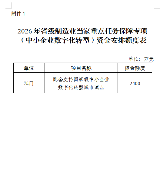 1.2026年省级制造业当家重点任务保障专项(中小企业数字化转型)资金安排额度表