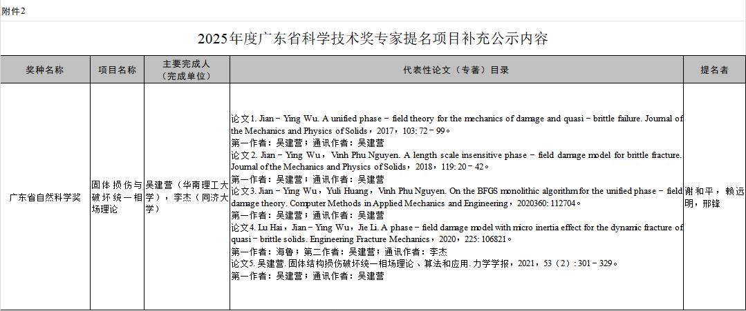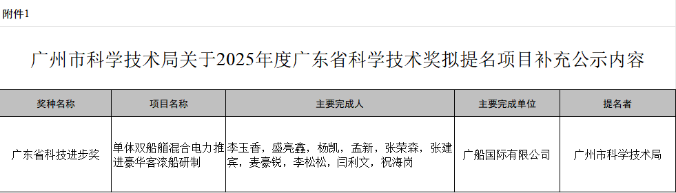 根据《广东省科学技术厅关于2025年度广东省科学技术奖提名工作的通知》(粤科函区字〔2025〕1942号)的要求,因部分公示项目信息调整,现将调整后项目信息进行补充公示,公示期为2026年1月13—19日。