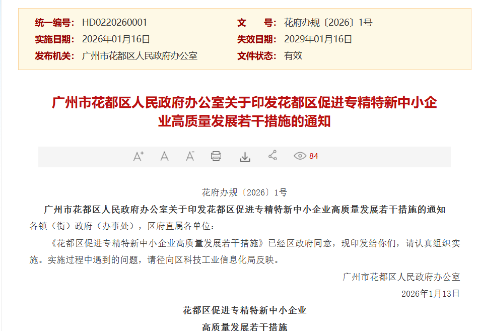广州市花都区人民政府办公室关于印发花都区促进专精特新中小企业高质量发展若干措施的通知