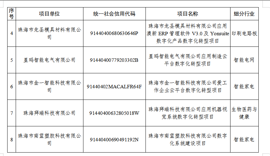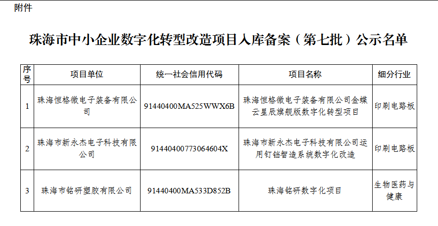 附件:珠海市中小企业数字化转型改造项目入库备案(第七批)公示名单