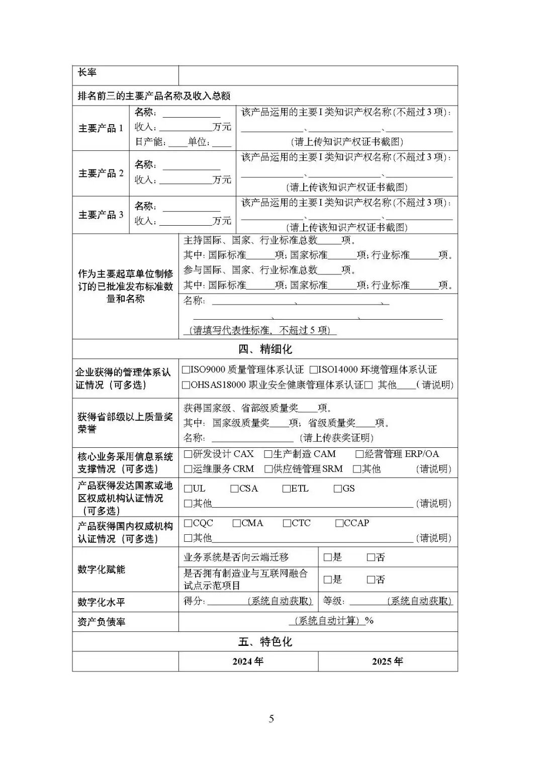 (五)专精特新“小巨人”企业申请和复核采取线上填报与线下报送相结合的方式。线上在部优质中小企业梯度培育平台填报,时间为2026年4月25日至5月25日。线下报送以企业属地中小企业主管部门要求为准,线下与线上数据应保持一致。