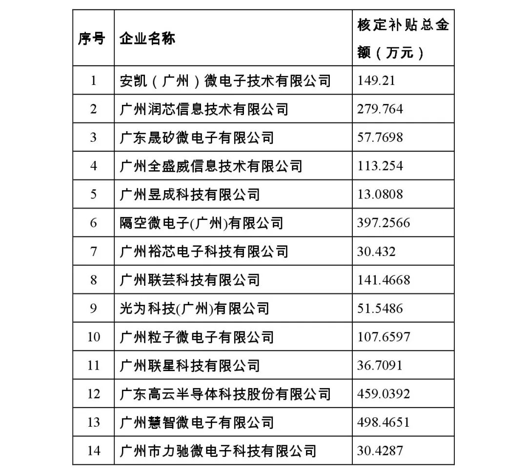 根据《黄埔区 广州开发区新一代信息技术产业发展实施细则》(穗开经信规字〔2018〕2号)和《申请新一代信息技术企业研发补贴办事指南》,按照申报通知要求,我局组织开展了2019年度新一代信息技术企业研发补贴事项兑现工作,经委托专家评审,并对审核结果进行了公示。经研究,同意拨付安凯(广州)微电子技术有限公司等18家企业新一代信息技术企业研发补贴,详见附表《2019年度新一代信息技术企业研发补贴核定情况表》(附件1)。