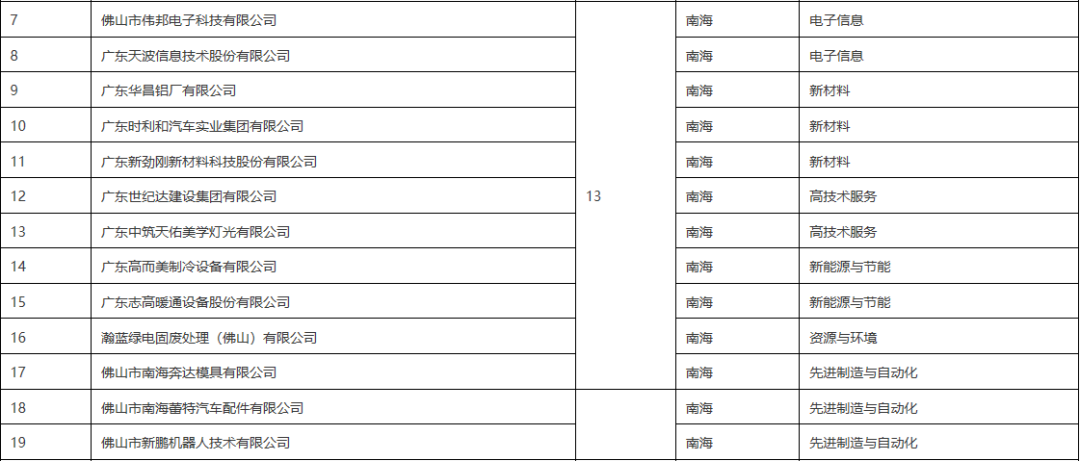 佛山市人民政府办公室关于公布2019年佛山市标杆高新技术企业50强名单的通知