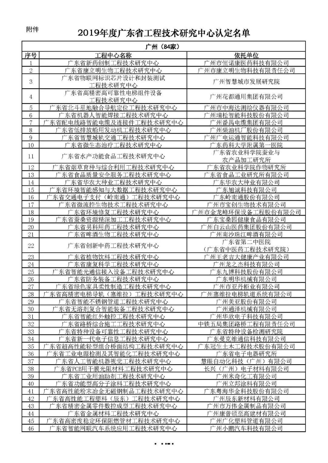 附件:2019年度广东省工程技术研究中心认定名单
