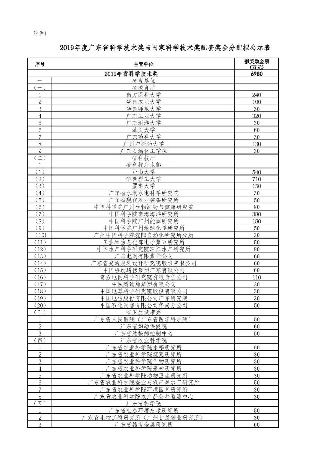 1.2019年度广东省科学技术奖与国家科学技术奖配套奖金分配拟公示表
