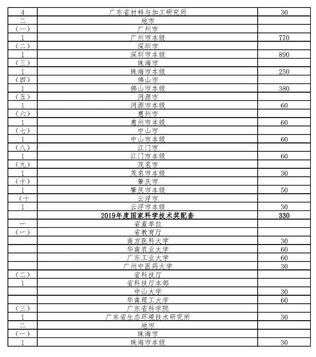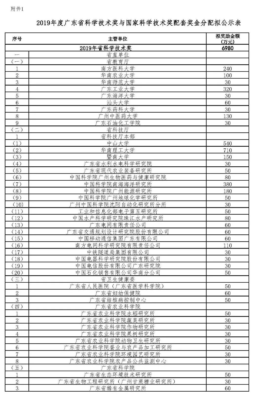 1.2019年度广东省科学技术奖与国家科学技术奖配套奖金分配拟公示表