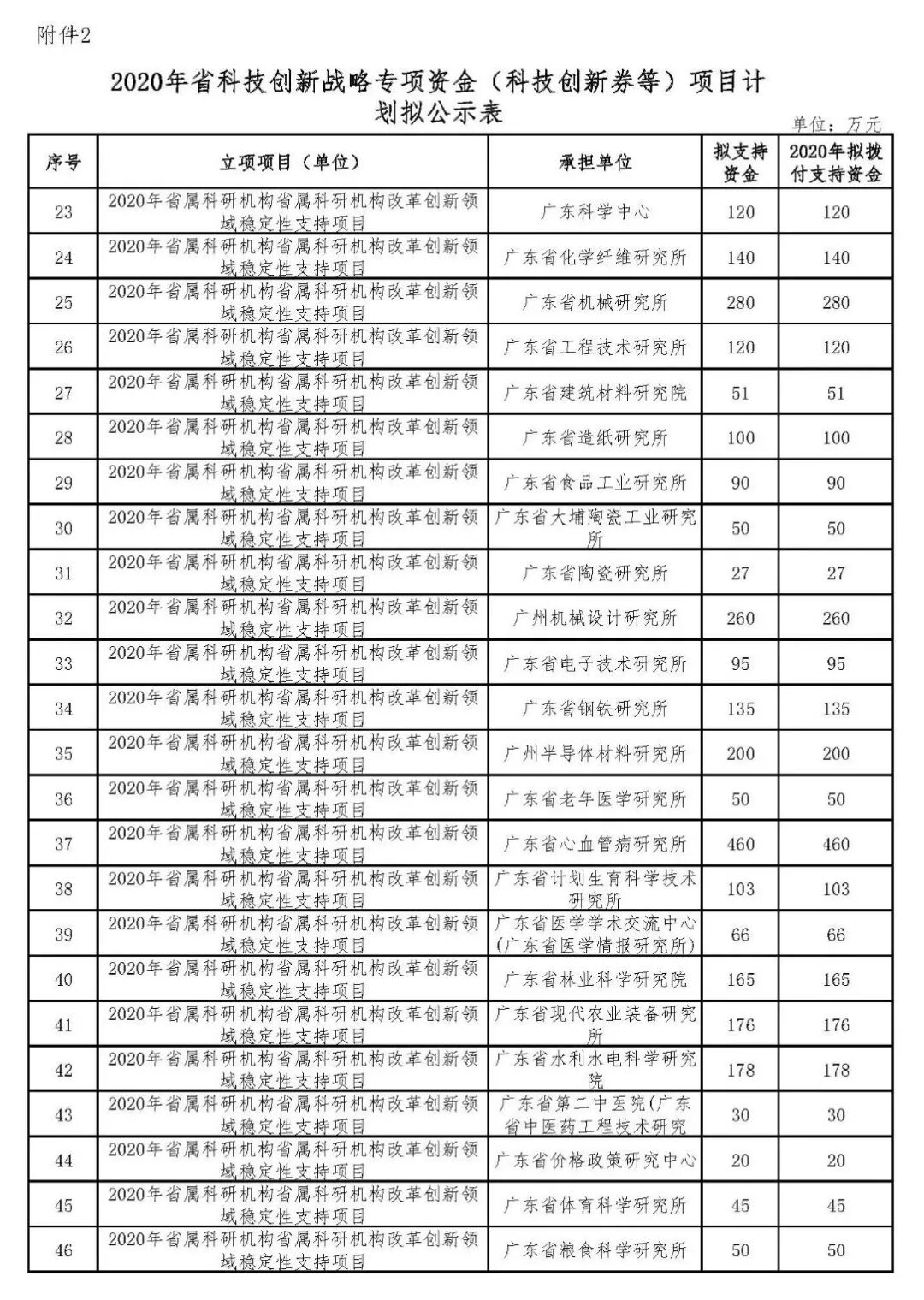 2.2020年省科技创新战略专项资金(科技创新券等)项目计划拟安排表