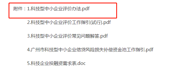 在文章最下方《广州市科学技术局关于组织开展2020年科技型中小企业评价工作的通知》中找到附件