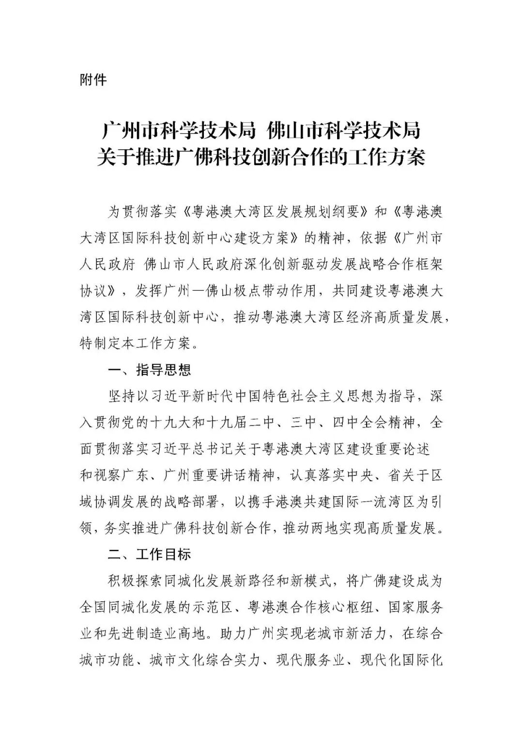 附件:广州市科学技术局 佛山市科学技术局关于推进广佛科技创新合作的工作方案