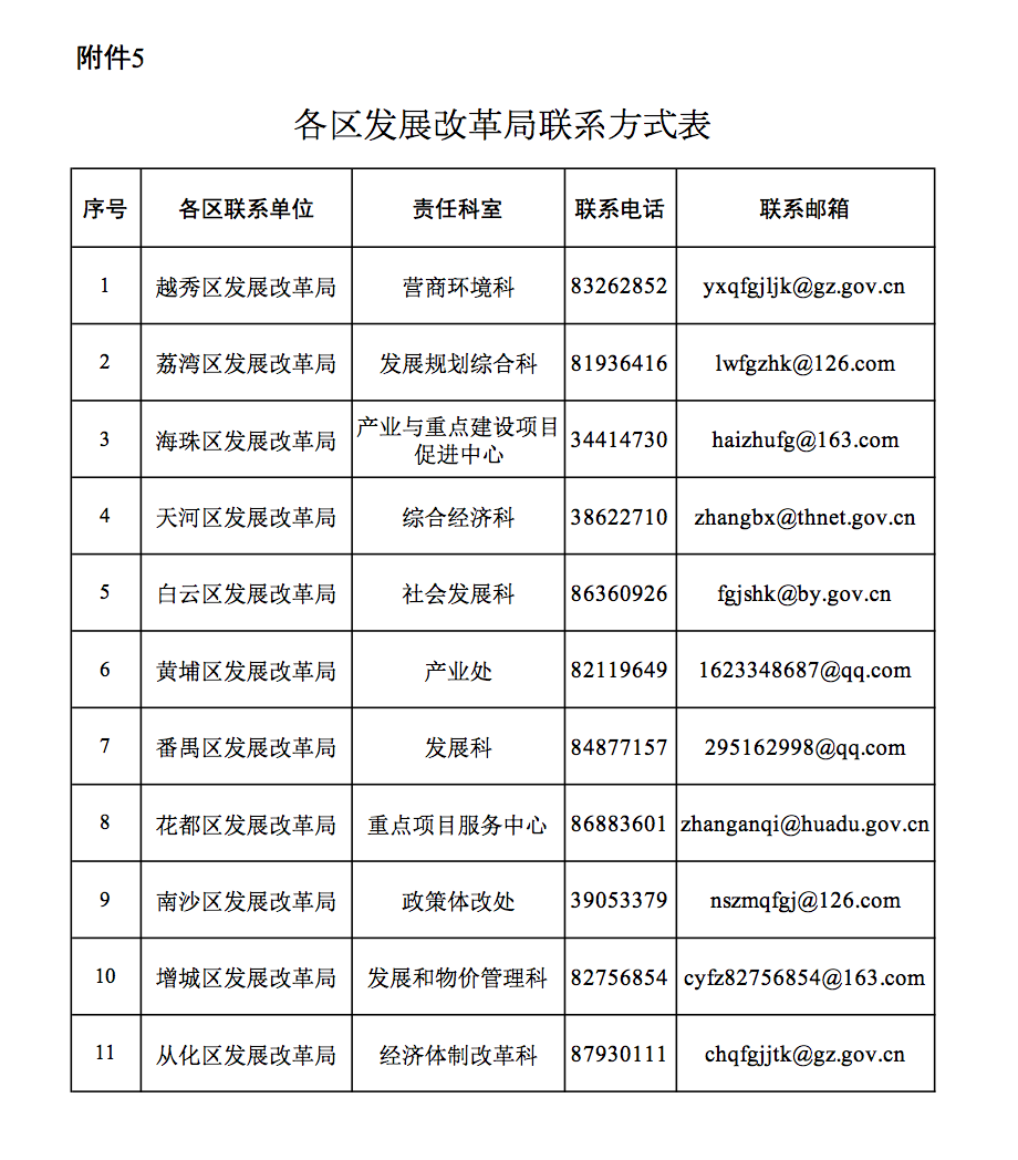 各区联系方式详见《各区发展改革局联系方式表》附件5