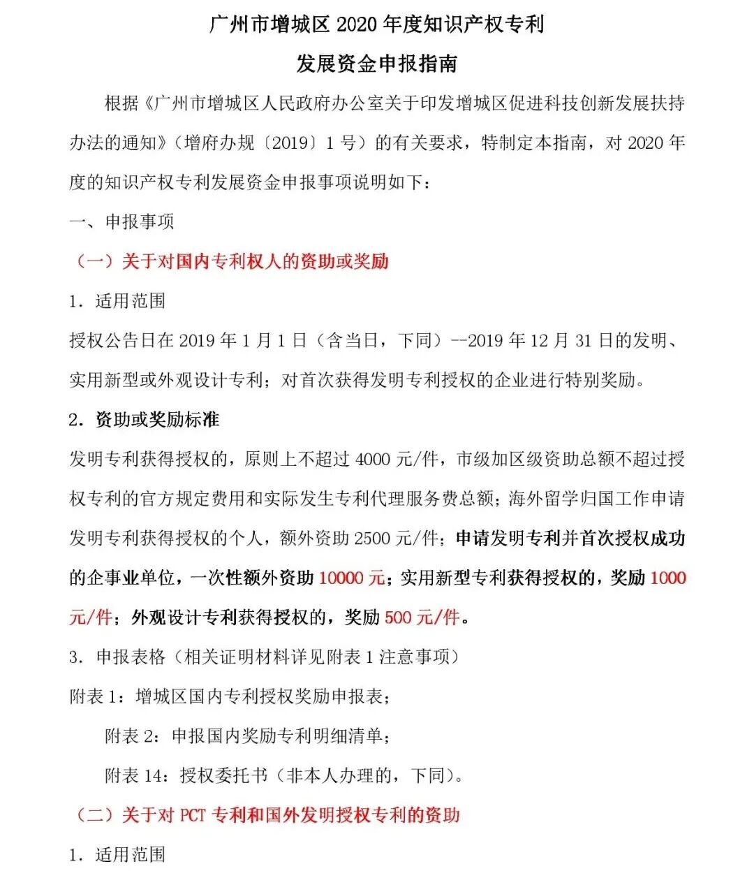 关于印发《广州市增城区2020年度知识产权专利发展资金申报指南》的通知