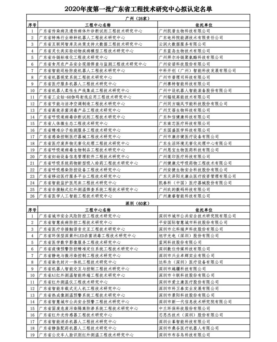 广东省科学技术厅关于拟认定2020年度第一批广东省工程技术研究中心名单的公示