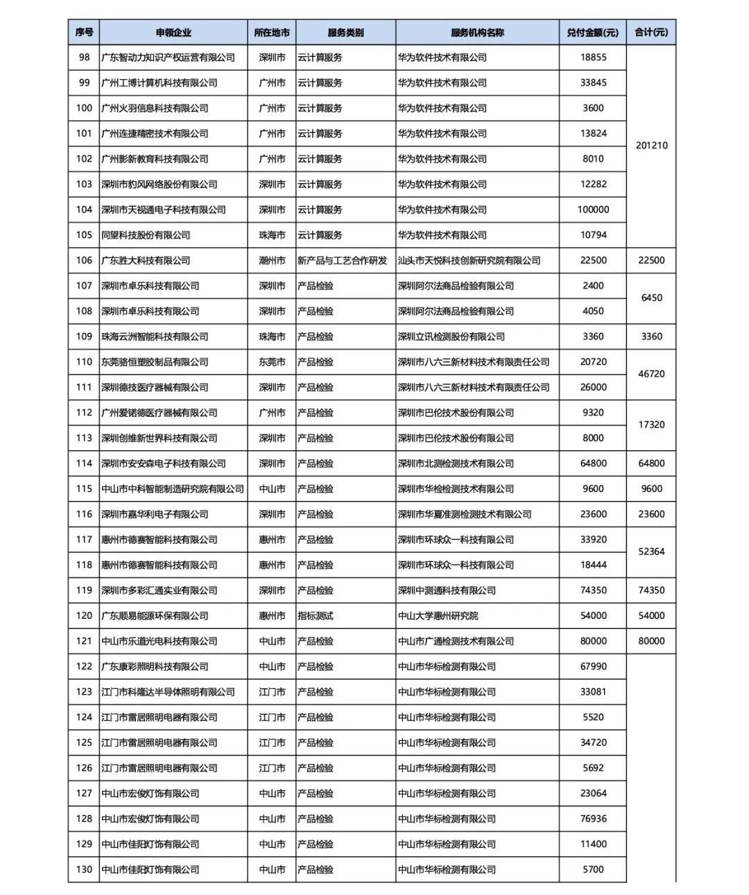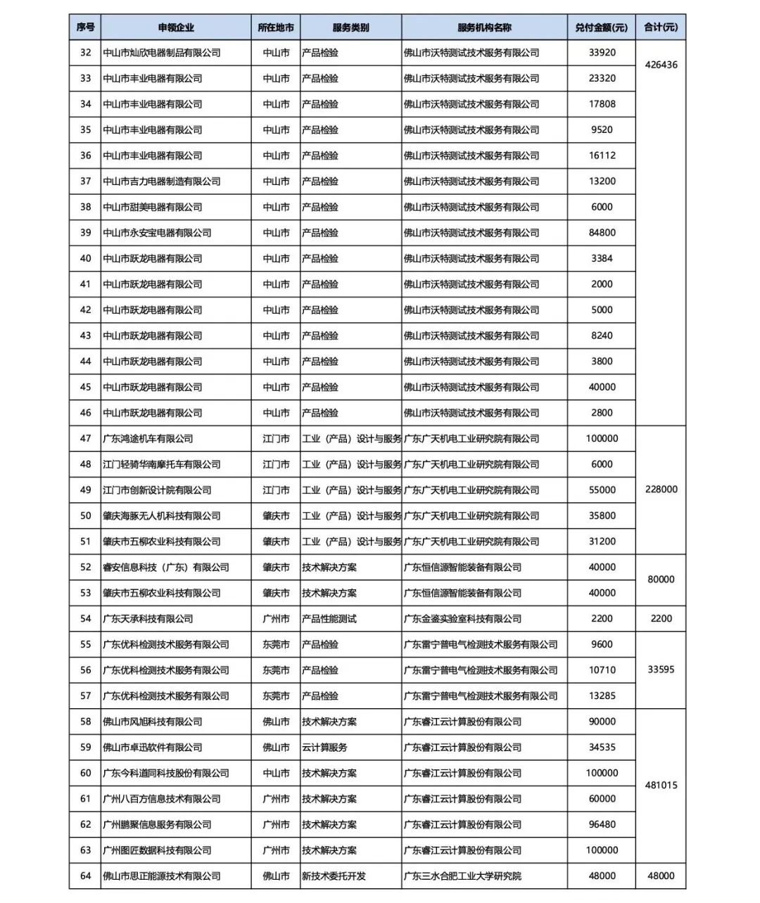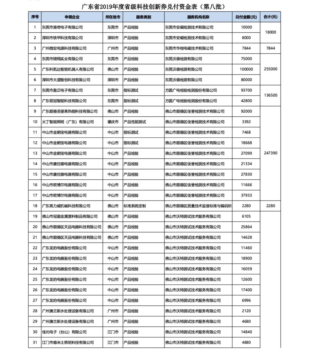 附件:广东省2019年度省级科技创新券兑付资金表(第八批)