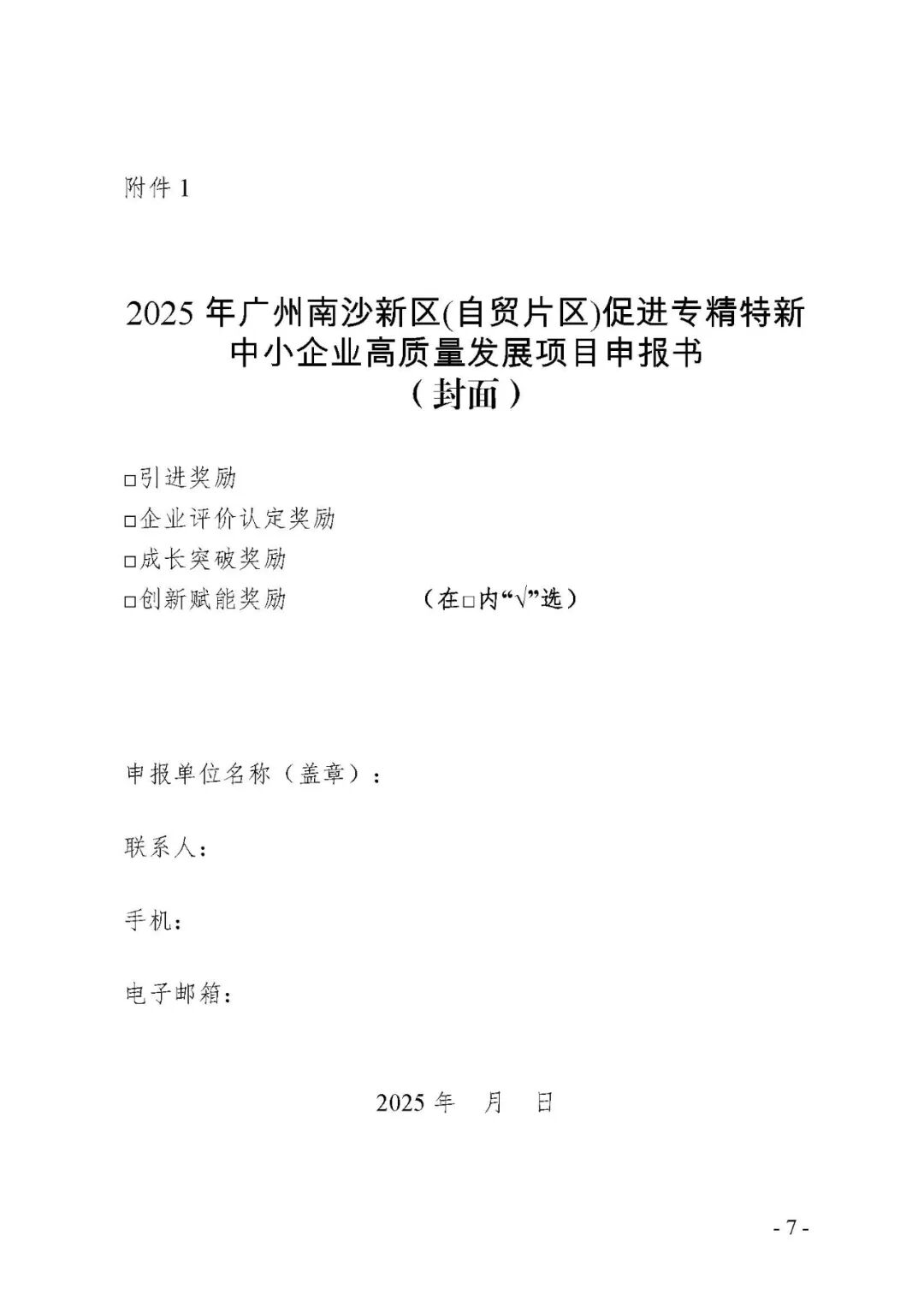 附件:2025年广州南沙新区(自贸片区)促进专精特新中小企业高质量发展项目申报指南