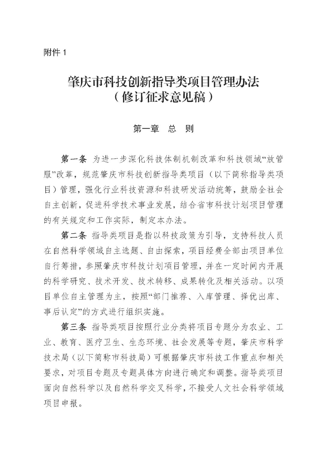 附件1:肇庆市科技创新指导类项目管理办法(修订征求意见稿)