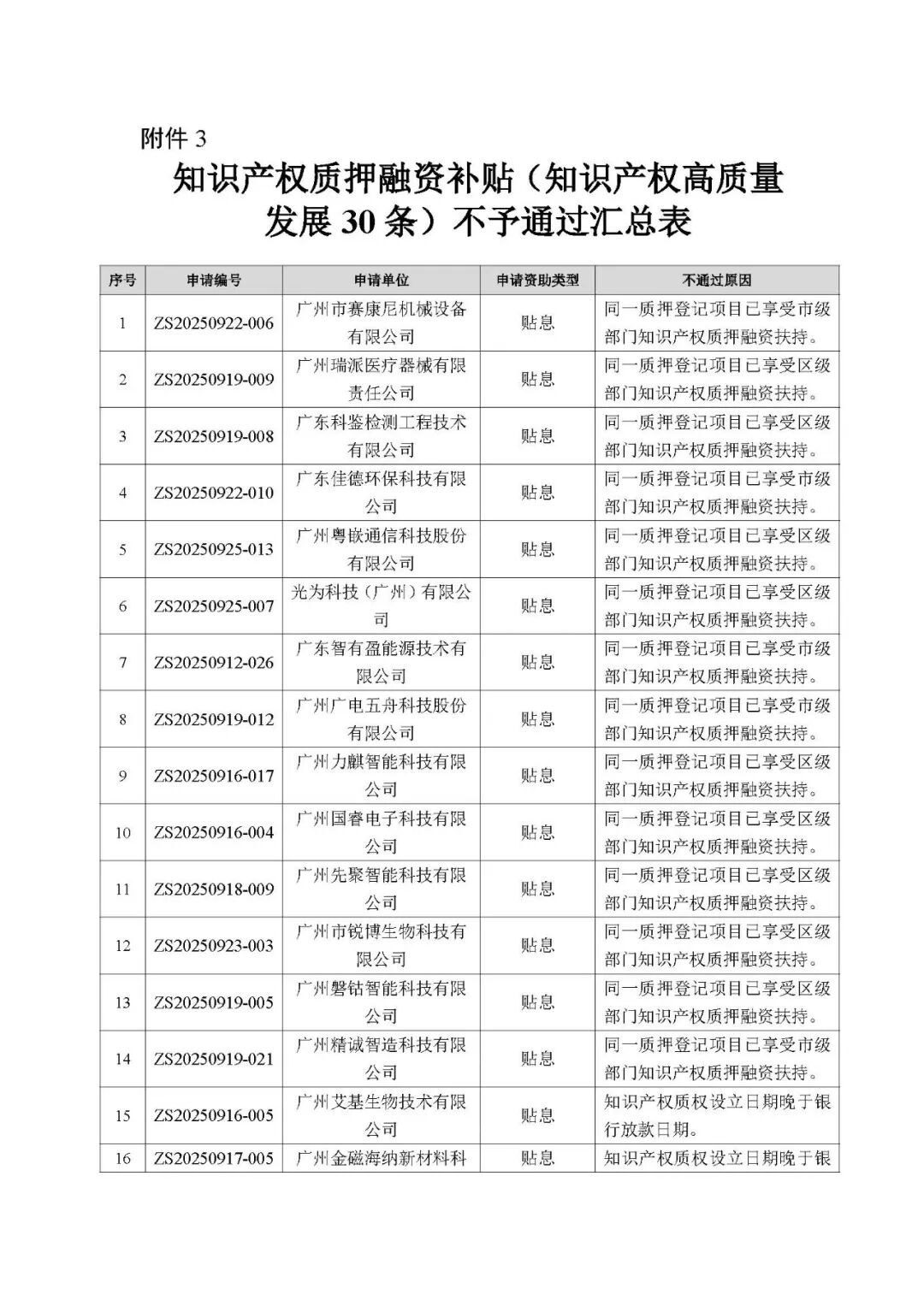 3.知识产权质押融资补贴(知识产权高质量发展30条)不予通过汇总表