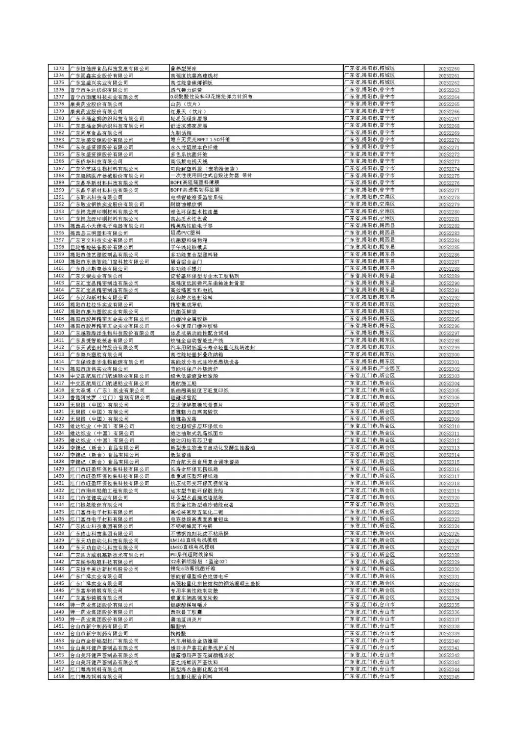根据《关于组织开展2025年广东省名优高新技术产品评选工作的通知》《广东省名优高新技术产品评选工作管理办法》及《名优高新技术产品评价规范》有关要求,2025年第二批广东省名优高新技术产品名单已完成公示。现将通过公示的3884项2025年第二批广东省名优高新技术产品(详见附件)予以公布。