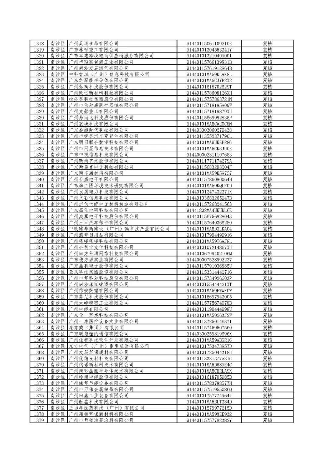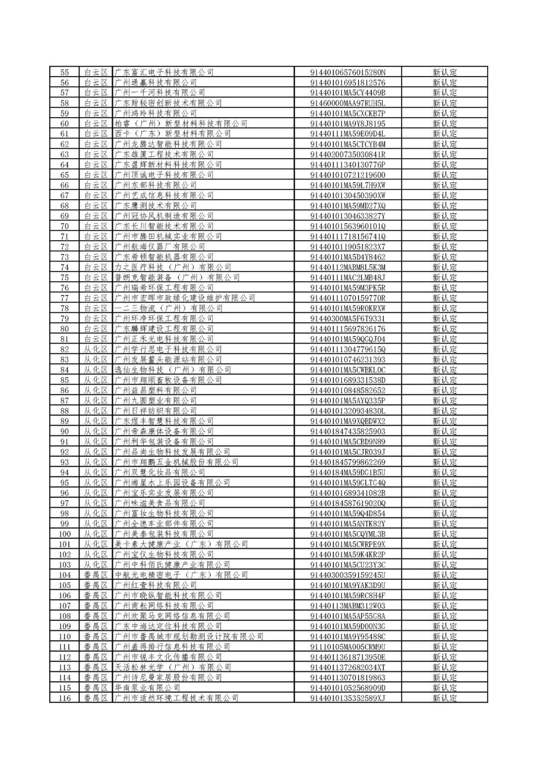 根据《广东省优质中小企业梯度培育管理实施细则》和《广州市工业和信息化局关于组织开展2025年创新型中小企业评价(复核)和专精特新中小企业认定(复核)工作的通知》(粤工信融资函〔2025〕4号)相关要求,我局按要求组织开展了2025年专精特新中小企业认定(复核)工作,并在2025年10月17日至10月23日期间进行拟公示,拟公示异议均已处理完毕,现将通过审核的2617家专精特新中小企业予以公示。公示时间:2025年11月26日至2025年12月3日。