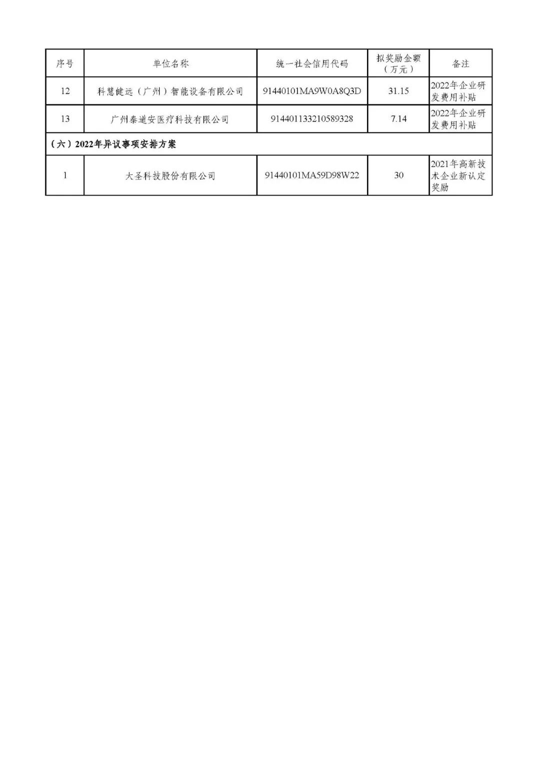 根据《广州市南沙区人民政府办公室关于印发广州市南沙区培育科技企业实施办法的通知》(穗南府办规〔2025〕5号)有关要求,我局开展了2025年创新驱动27条政策兑现申报工作。经单位申报、资料初审、实质审核、奖励评审等程序,现将相关兑现事项中符合条件的拟奖励单位及异议审议结果名单进行公示,具体分配方案详见附件。公示期为12月2日-8日。