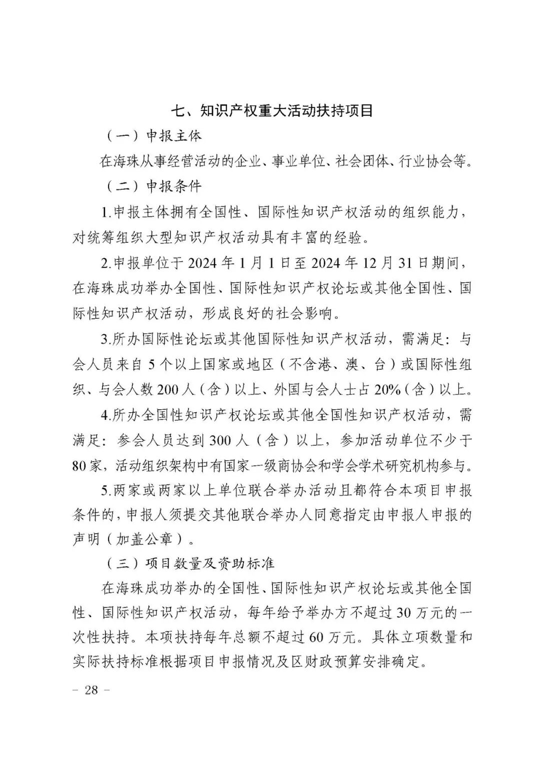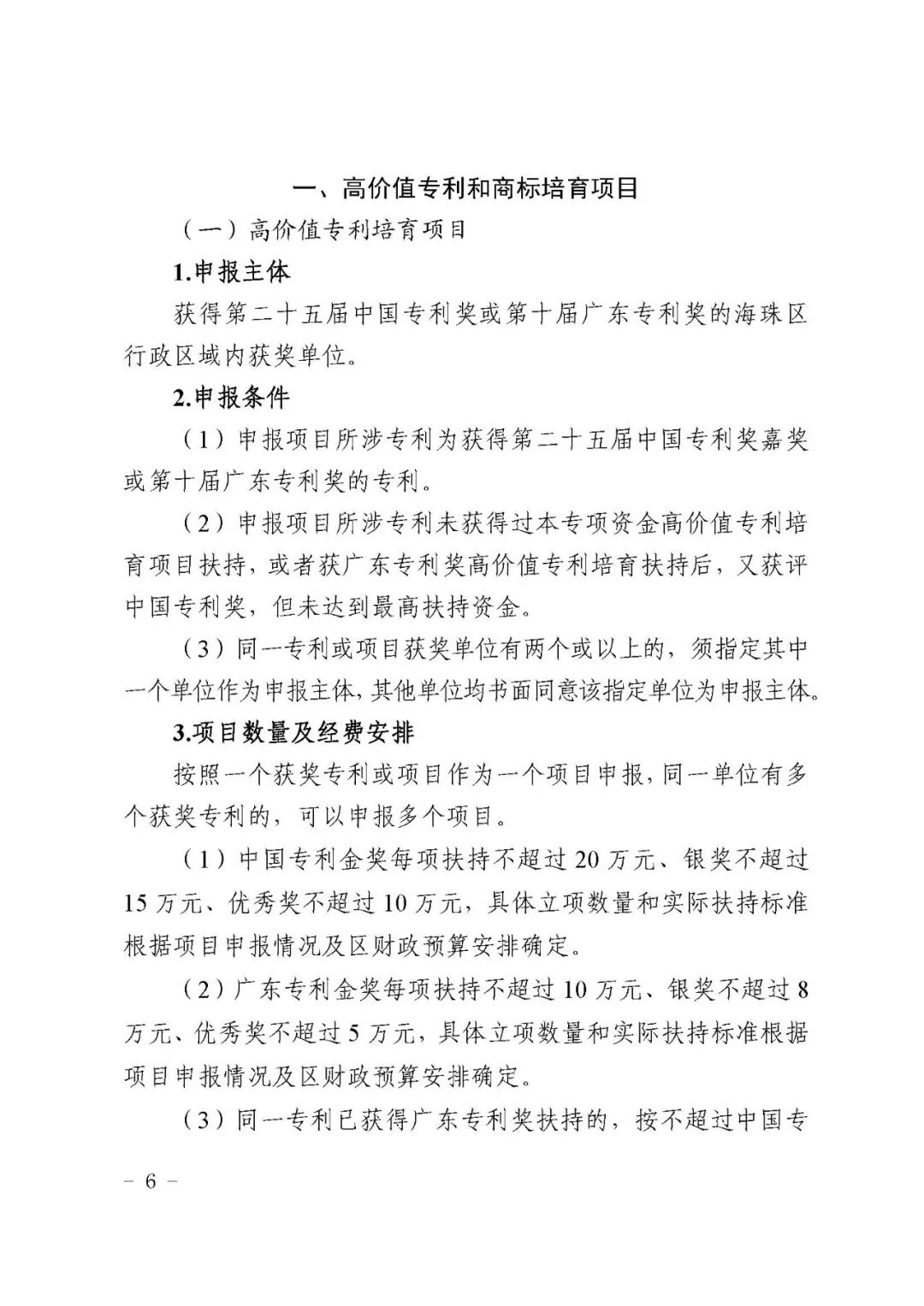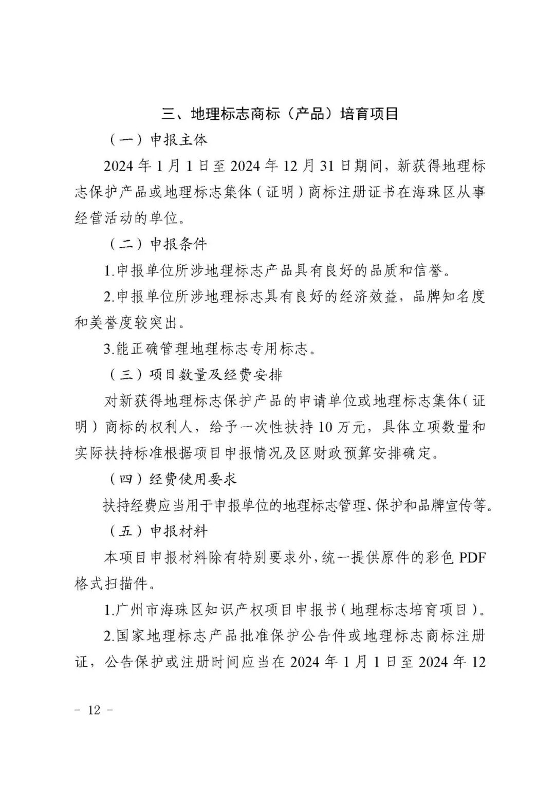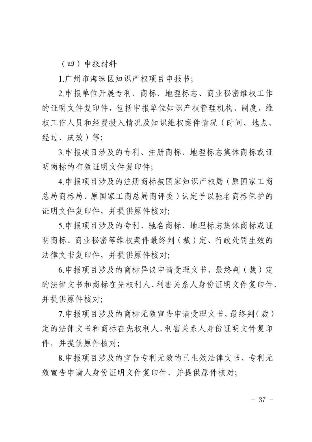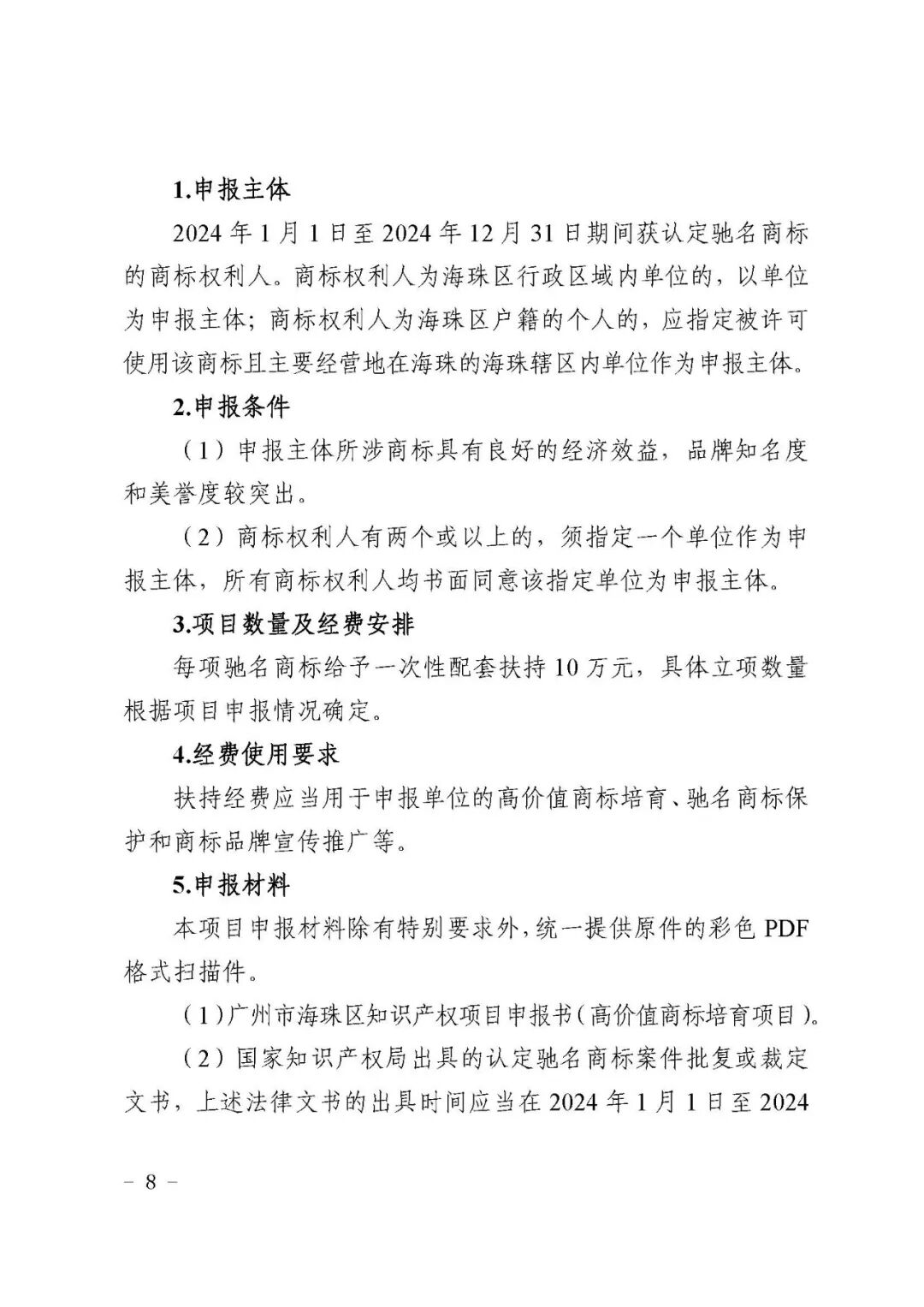 为做好2025年度海珠区知识产权工作专项资金项目申报工作,根据《广州市海珠区知识产权工作专项资金管理办法》(海市监规字〔2024〕1号)有关要求,现印发《2025年度广州市海珠区知识产权工作专项资金项目申报指南》,请符合条件的单位按照文件要求积极申报,进一步推动区知识产权工作。