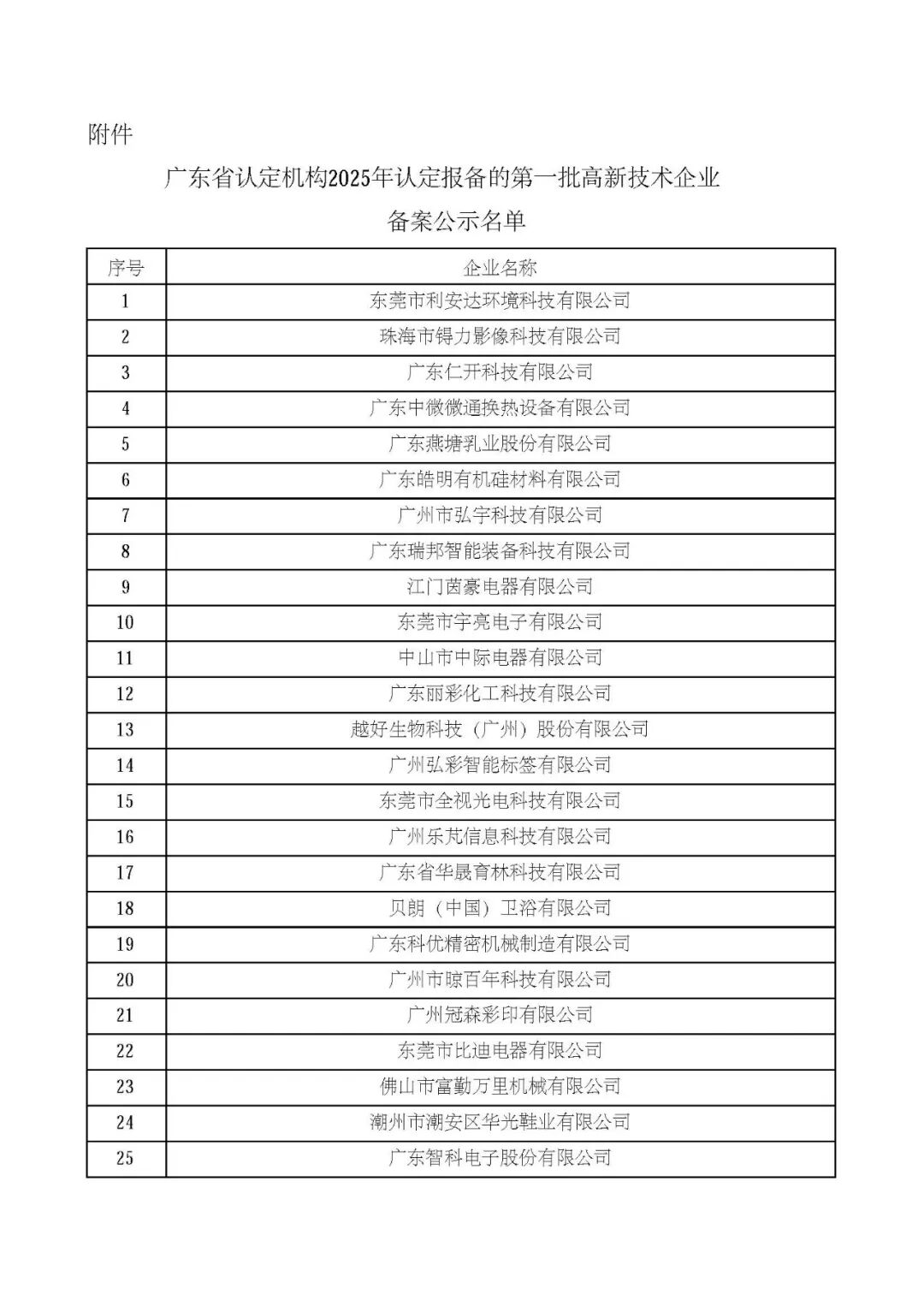 附件:广东省认定机构2025年认定报备的第一批高新技术企业备案公示名单