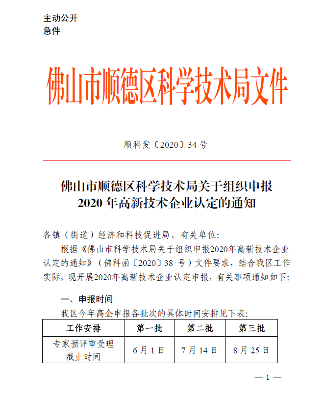 根据《佛山市科学技术局关于组织申报2020年高新技术企业认定的通知》(佛科函〔2020〕38